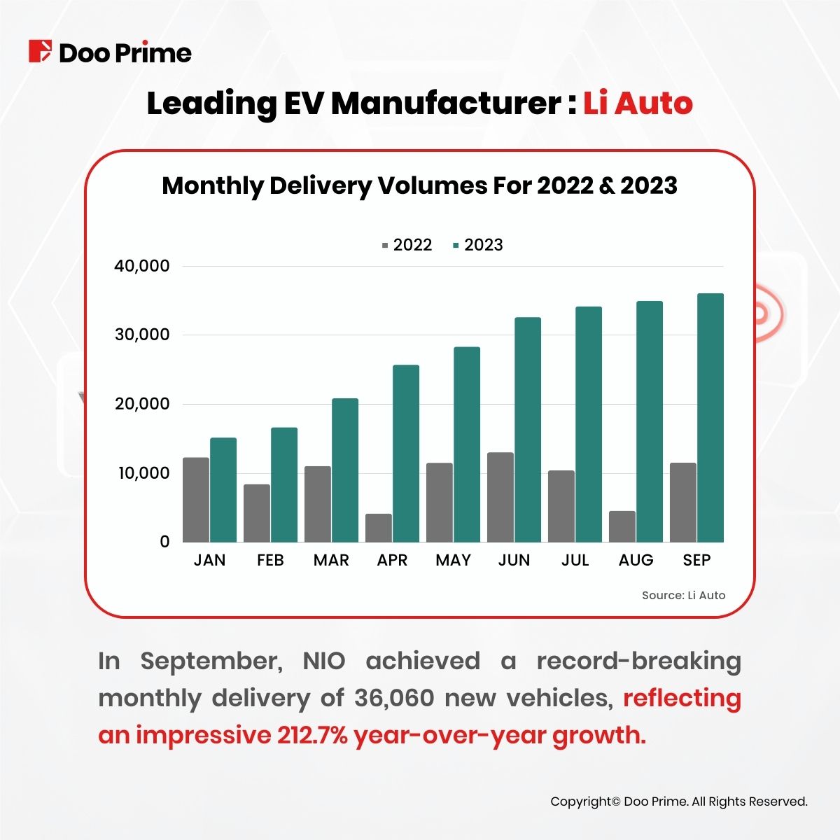 In September alone, Li Auto celebrated the delivery of 36,060 new vehicles, an astonishing 212.7% year-on-year increase and a new record for monthly deliveries.