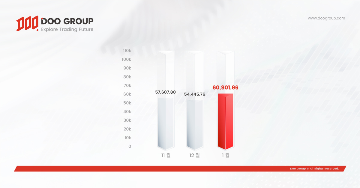 보고서에 따르면 2023년 1월 Doo Prime의 총 거래액은 약 609 억 달러로 전월 대비 12.91% 증가했습니다. 또한 1월 일평균 거래량 (ADV) 은 19억 6000만 달러로 지난해 12월보다 약 12.91% 증가했습니다.