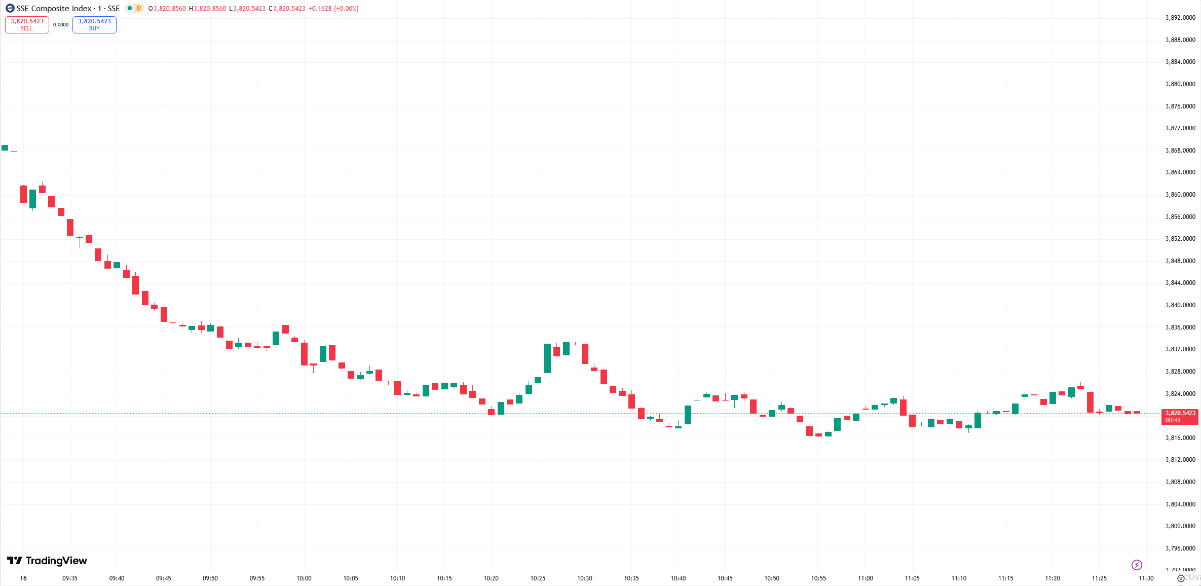 - Shanghai Composite fell 1.22% to 3,820.85