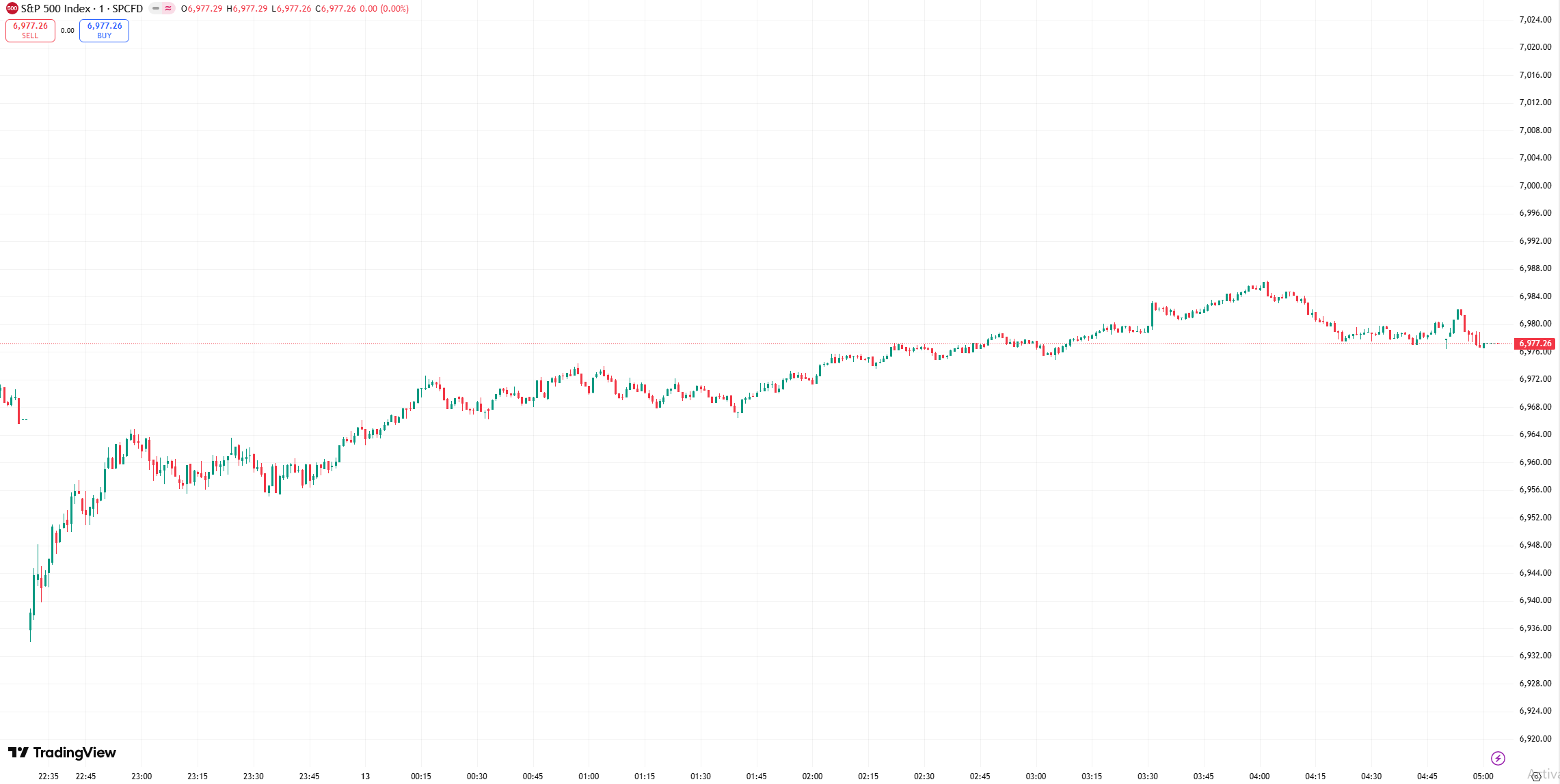 S&P 500: +10.99 (+0.16%) at 6,977.27