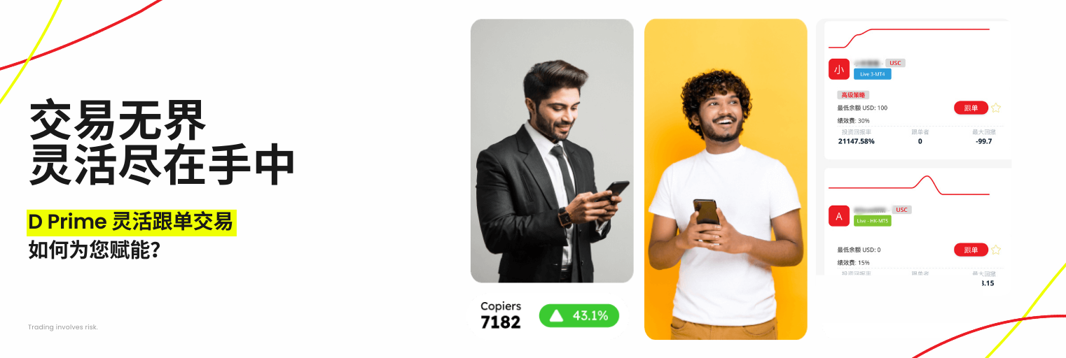 正因如此,D Prime 最新推出的灵活跟单交易解决方案——灵活跟单交易,旨在实现高度优化和卓越的灵活性,提供: