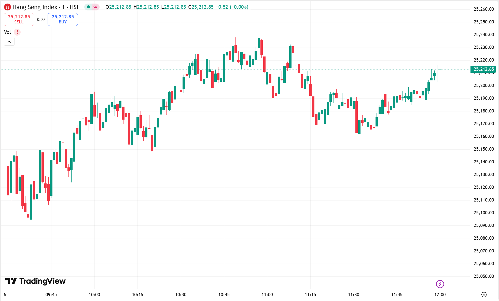 • 恒生指数涨 0.62%,收报 25,212.85 点