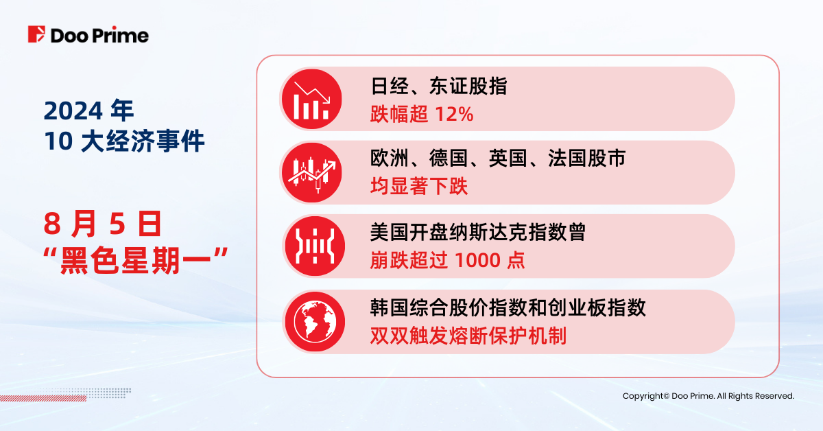 2024 年 7 月底,日本央行意外地将基准利率从 0%至 0.1%的区间上调至 0.25%,为 2024 年以来的第二次加息,引发日元套利平仓潮,导致日经指数在 8 月 5 日暴跌超 12%,引发了”黑色星期一”。