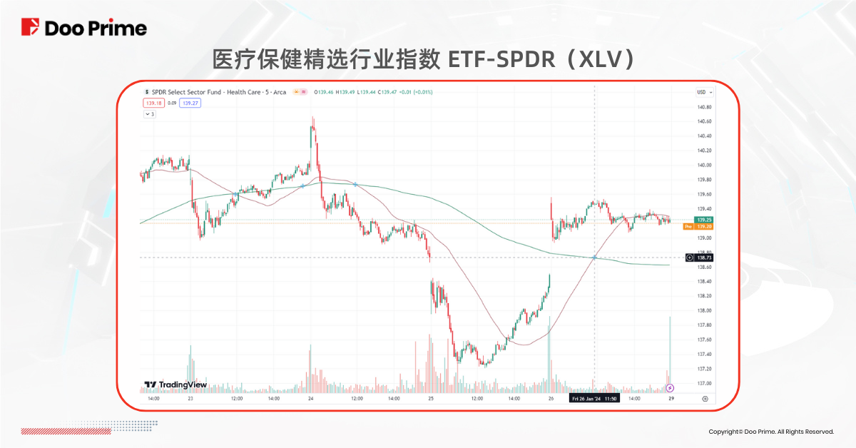 1 月至今,多只医疗股出现了看涨指标“金叉”(golden cross),即 50 天移动平均线攻上 200 天移动平均线,包括跟踪 64 只美股医疗股、市值中位数达 330 亿美元的医疗保健精选行业指数 ETF-SPDR(XLV)。