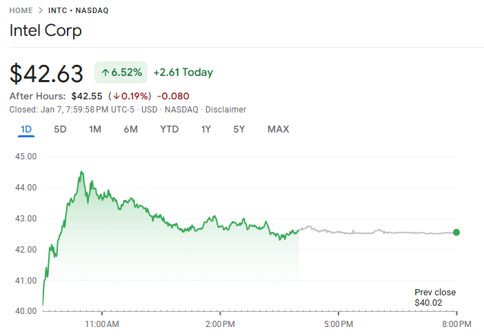 英特尔 (INTC) 在 CES 消费电子展上正式发布代号为 “Panther Lake” 的 Core Ultra Series 3 处理器,这是一款基于最新 18A 制程打造的 AI PC 芯片。受消息鼓舞,英特尔股价大涨 6.47%。