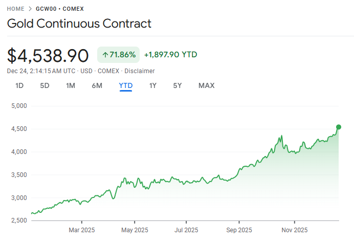 金价突破 4,500 美元再创新高,受地缘政治局势升级及美国降息预期影响