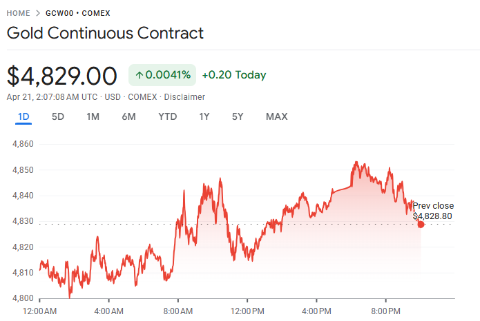 当天金价一度下跌 1.9%,随后收复大部分跌幅,交投于每盎司 4810 美元附近。