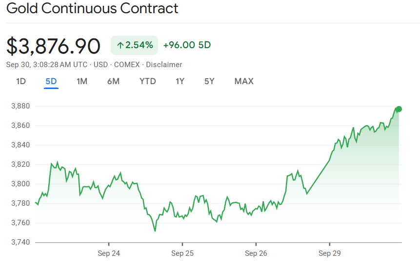 行业动态 | 金价突破每盎司 3800 美元关口再创历史新高,美国政府停摆担忧推动美元走弱