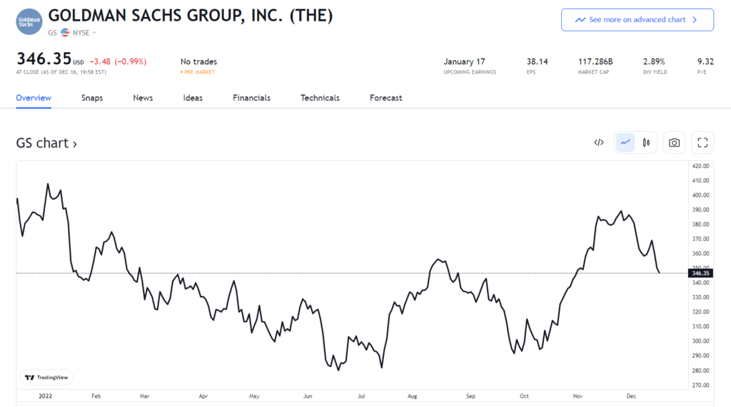 裁员消息传出后,高盛集团股价下挫 0.99%,报346.35。