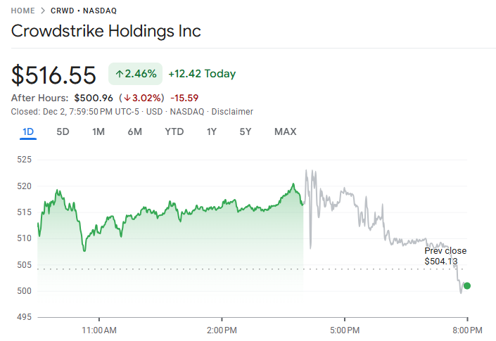 12 月 2 日至 3 日,CrowdStrike (CRWD) 上调 2026 财年盈利预期,将每股盈余 (EPS) 下限由 3.60 美元上修至 3.70 美元。公司表示,此举反映企业在应对日益复杂的黑客攻击及网络间谍威胁时,对其以人工智能驱动的资安解决方案需求显著升温。