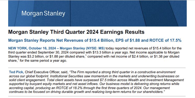 2024-10-17 | 摩根士丹利 , 美股 , 财报