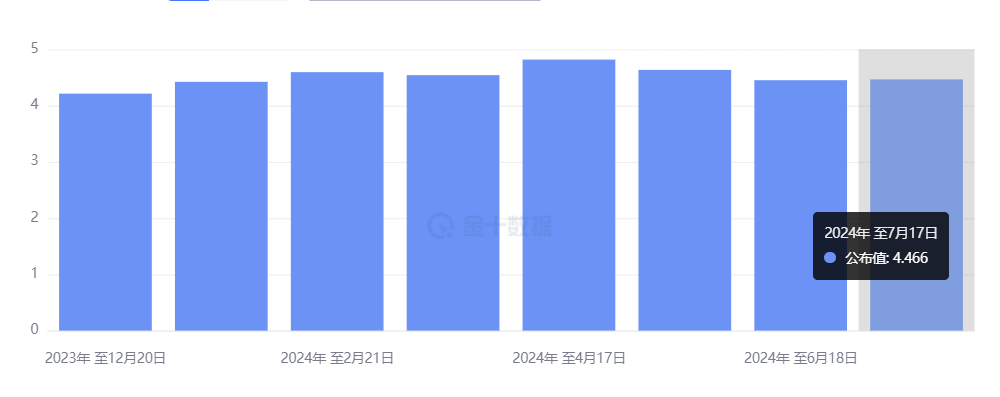本次 20 年期美债拍卖的得标利率 4.466%,高于 6 月 18 日的 4.452%,这与上周 30 年期的超长期美债拍卖最终得标利率高于 6 月一致,但本月更短期美债的大趋势是,7 月的得标利率低于 6 月。本次得标利率比预发行利率低 0.1 个基点,没有出现体现需求疲软的尾部利差。本次 20 年期美债的投标倍数为 2.68,低于前次的 2.74,不过高于最近六个月均值的 2.63。