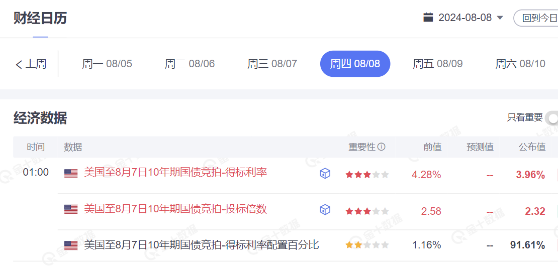 本次 10 年期美债的投标倍数仅为 2.32,创 2022 年 12 月以来最低,7 月时为 2.58。
