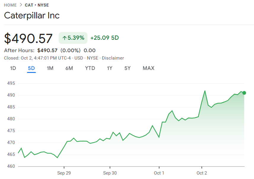AI 电力需求激增,Caterpillar 股价创历史新高