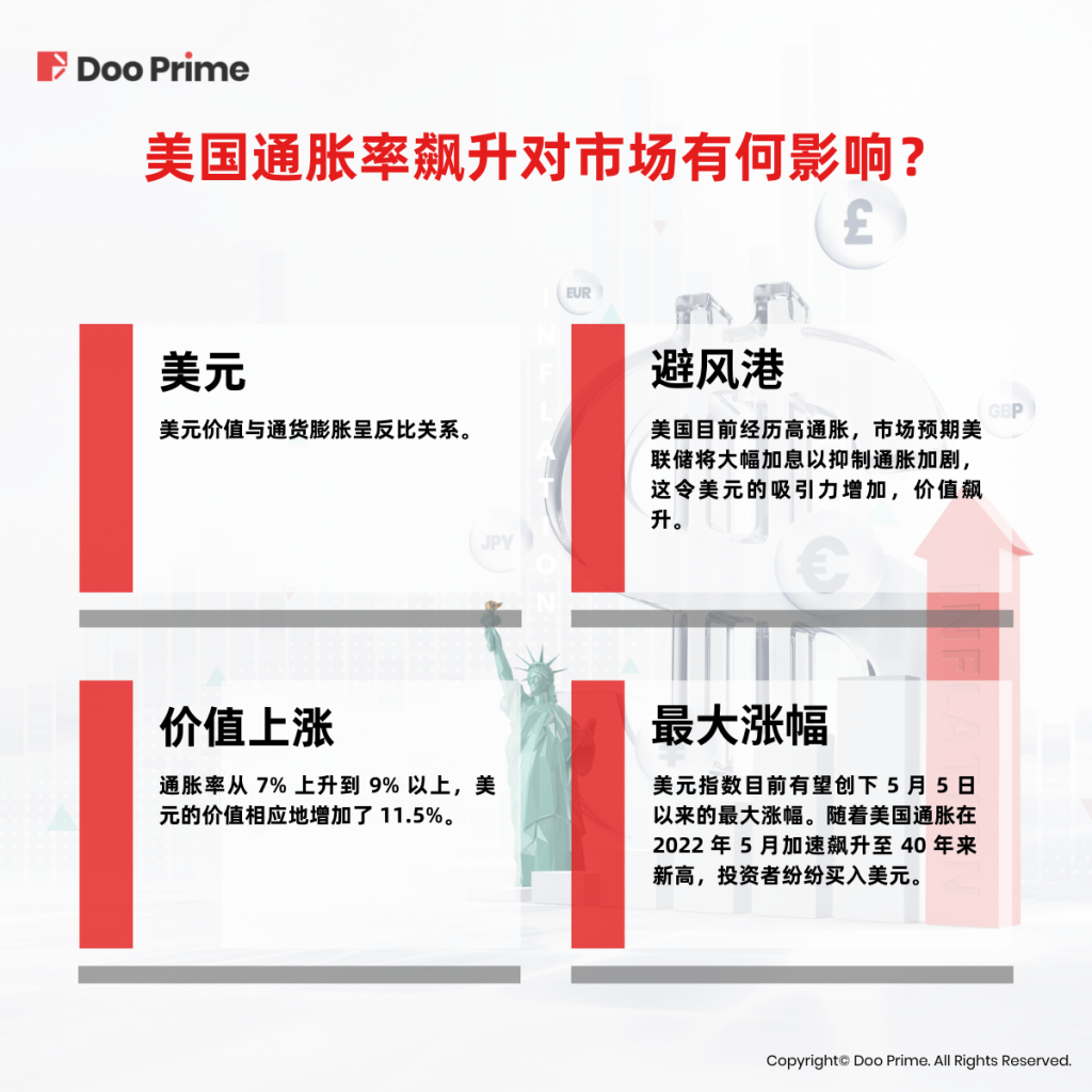 据彭博社报道,美元指数在 2022 年 6 月 10 日上涨 0.8%,创下五周以来最大涨幅。此前美国消费者物价指数同比上涨 8.6%,涨幅超出预期。