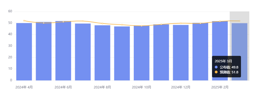 • 综合 PMI 初值 53.5,好于预期的 51.3,2 月前值为 51.6。