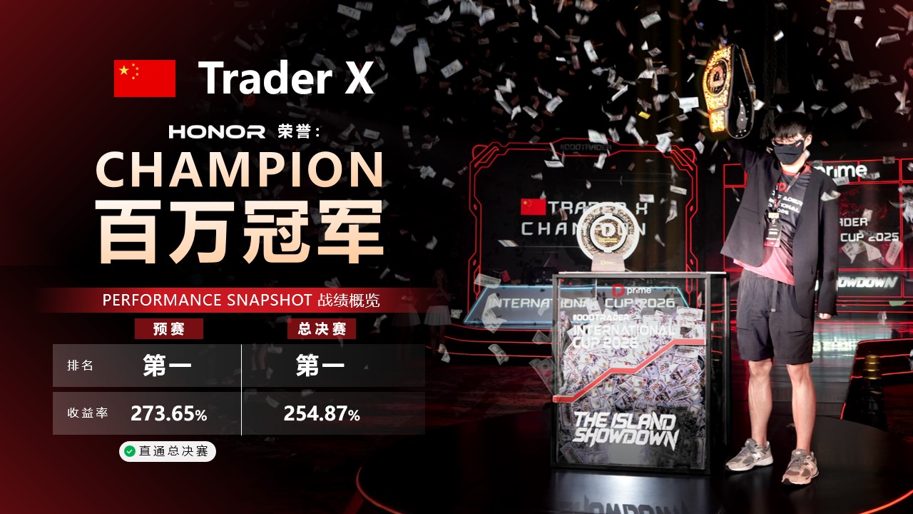 这么厉害的人竟然还是个学生?他是如何从零开始学交易,一步步登顶成为实盘交易大赛的总冠军?本次 D Prime 独家专访邀请到冠军本人 Trader X,他将毫无保留地分享自己的学习方法、心态转变,以及在总决赛中的 3 大实战操作!