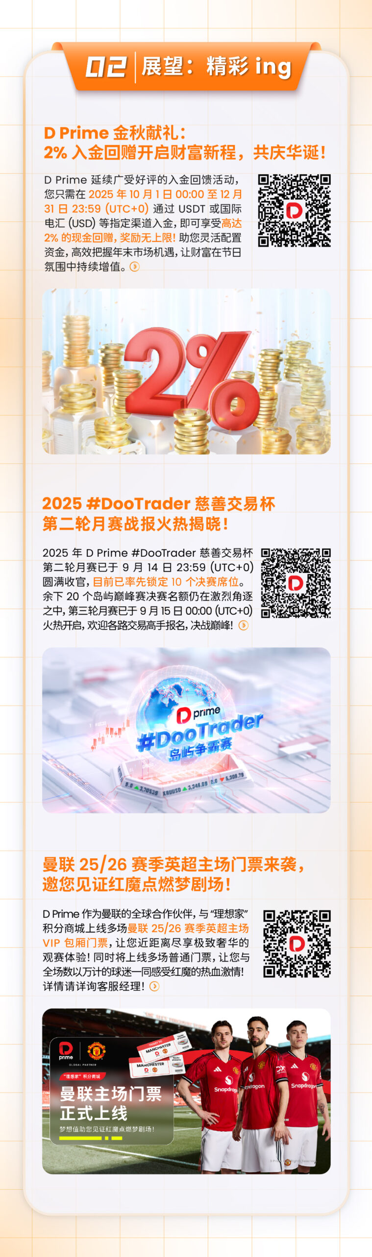 在与 D Prime 等交易平台进行任何交易之前,客户必须确保已阅读并完全理解各自金融工具的交易风险。如果客户对任何与交易和投资有关的风险存在疑问,应主动寻求独立的专业建议。更多详情,请参考 D Prime 等的客户协议和风险披露声明了解更多。