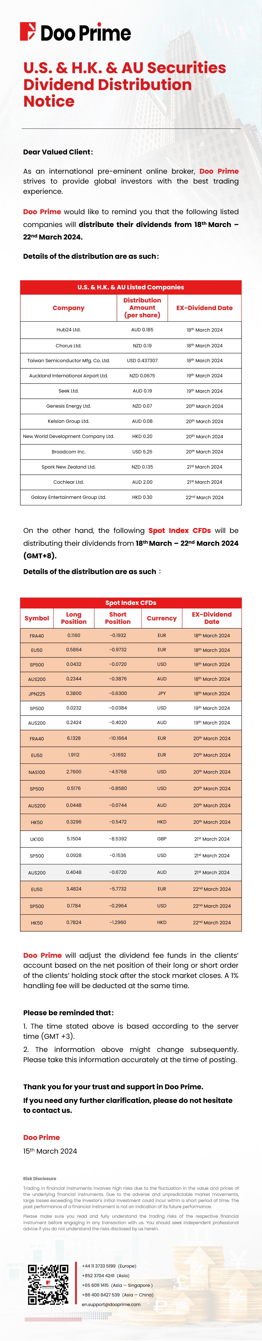 2024-03-15 | Dividend Distribution Notice , Securities , Spot Index