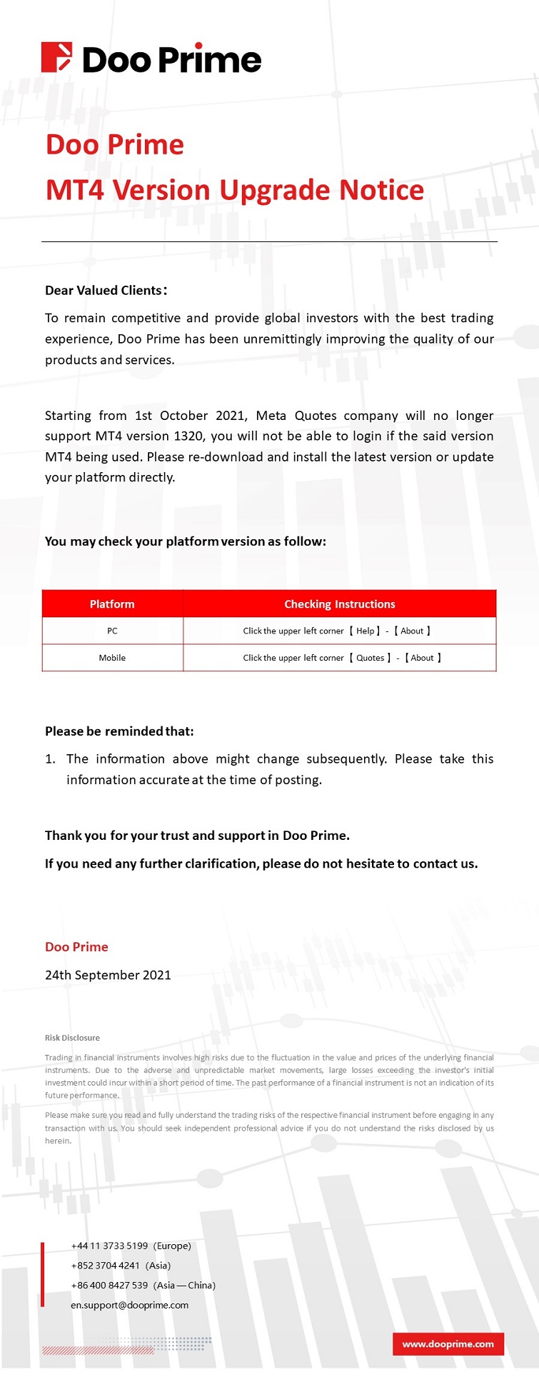 D Prime will upgrade MT4 Live 6 servers on April 18, 2026 to enhance performance. View the upgrade schedule and potential service impact.