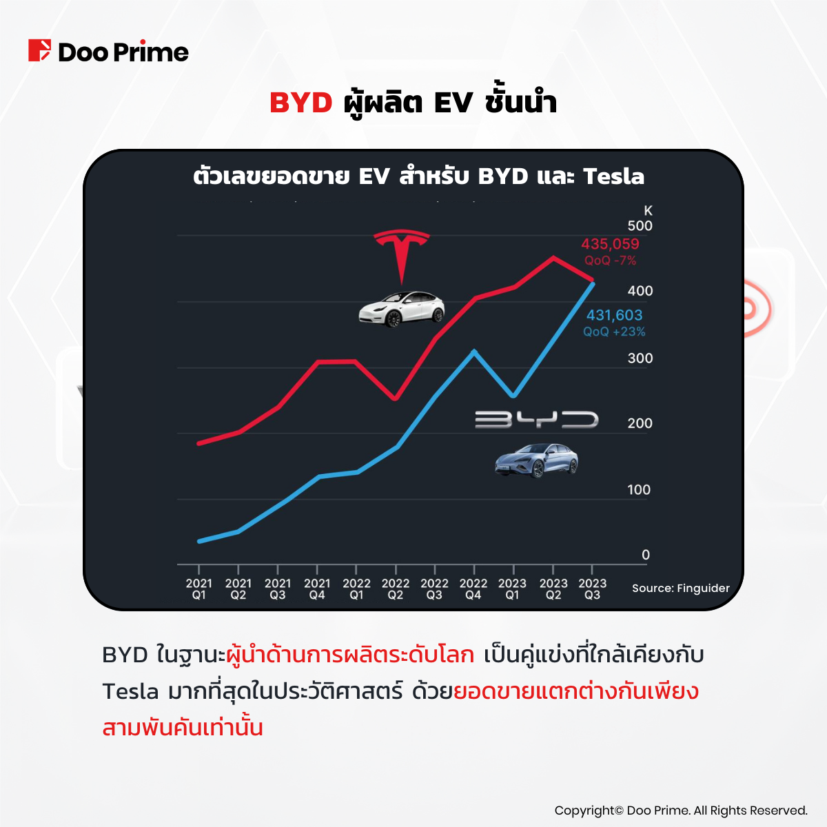 BYD เป็นบริษัทระดับแนวหน้าของอุตสาหกรรม EV ในจีน ไม่เพียงแต่เป็นผู้ผลิตและจัดจำหน่าย EV รายใหญ่ที่สุดของประเทศเท่านั้น แต่ยังกลายเป็นคู่แข่งสำคัญกับ Tesla อีกด้วย ข้อมูลการเติบโตล่าสุดบ่งชี้ว่า BYD รุกเข้าสู่ตลาดต่างประเทศ สร้างความได้เปรียบทางการแข่งขัน