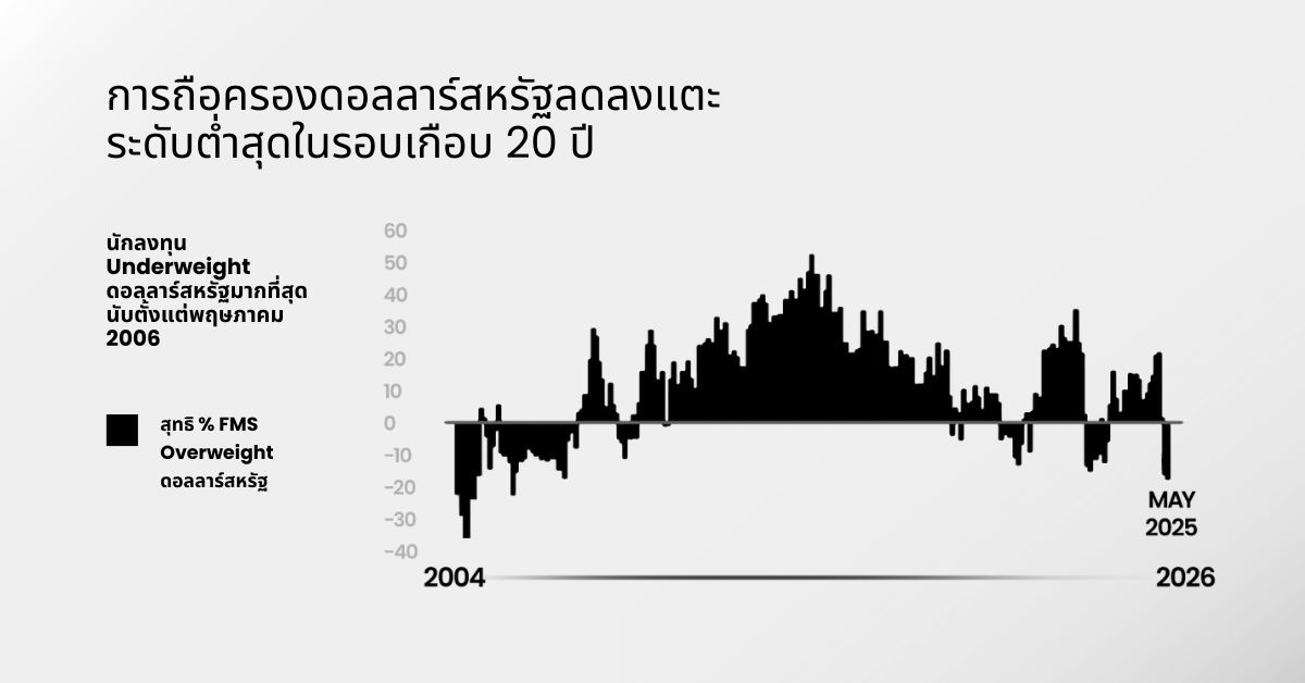 บทบาทของดอลลาร์ในฐานะสกุลเงินสำรองอันดับหนึ่งของโลกและสินทรัพย์ปลอดภัยกำลังถูกตั้งคำถาม จากผลสำรวจล่าสุดของ Bank of America พบว่า ผู้จัดการกองทุนทั่วโลกได้ลดสัดส่วนการถือครองดอลลาร์ลงสู่ระดับ ต่ำที่สุดนับตั้งแต่เดือนพฤษภาคม 2006 ซึ่งสะท้อนถึงความสนใจที่ลดลงต่อสินทรัพย์สหรัฐฯ