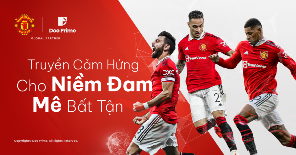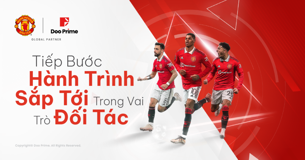 Vào đầu năm 2023, Doo Group và Manchester United đã chính thức thiết lập mối quan hệ đối tác toàn cầu trong nhiều năm. Như vậy, mối quan hệ giữa hai bên đã mang hai lĩnh vực bóng đá và fintech đến gần nhau hơn, từ đó tạo ra vị thế có 1-0-2 giữa cộng đồng giao dịch của chúng tôi và các fans của môn thể thao “vua” từ Manchester United. Riêng đối với chúng tôi, đây là bước tiến mang tầm chiến lược đầu tiên trên phạm vi toàn cầu khi được song hành  với câu lạc bộ (CLB) bóng đá hàng đầu thế giới.