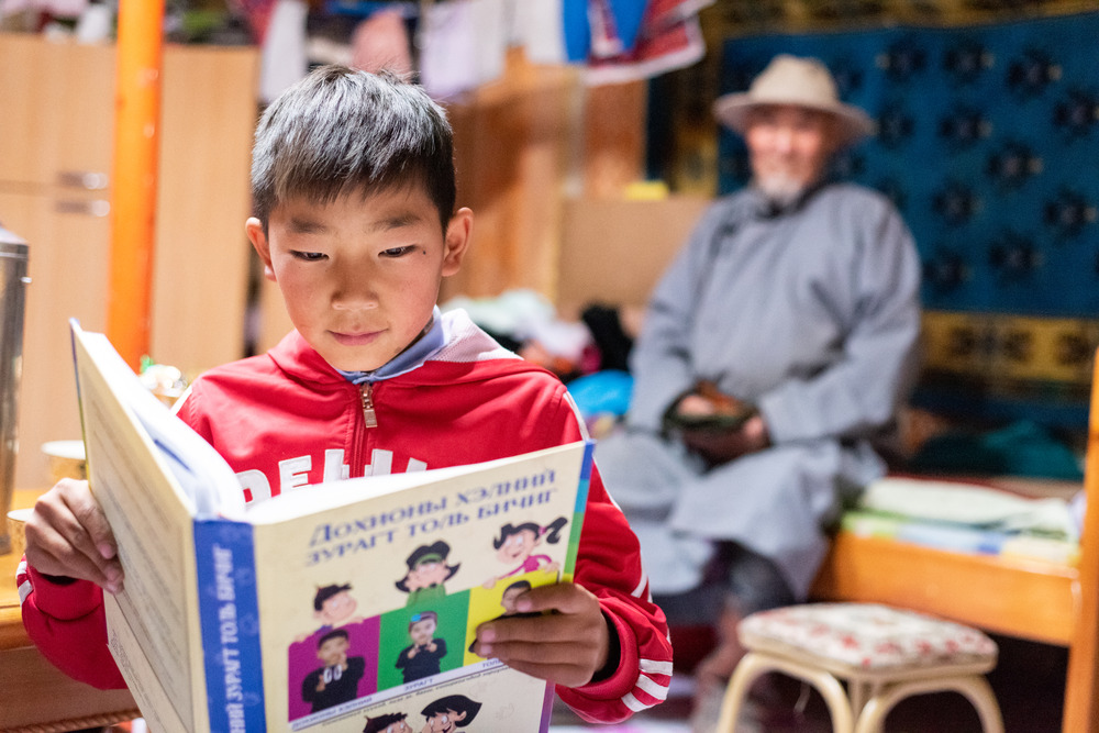 UNICEF đã phát triển một cuốn sách ngôn ngữ tín hiệu dành cho trẻ không nói được. Trên ảnh là em học sinh ở trường Giáo dục Phổ thông số 3 tại thành phố Altai.