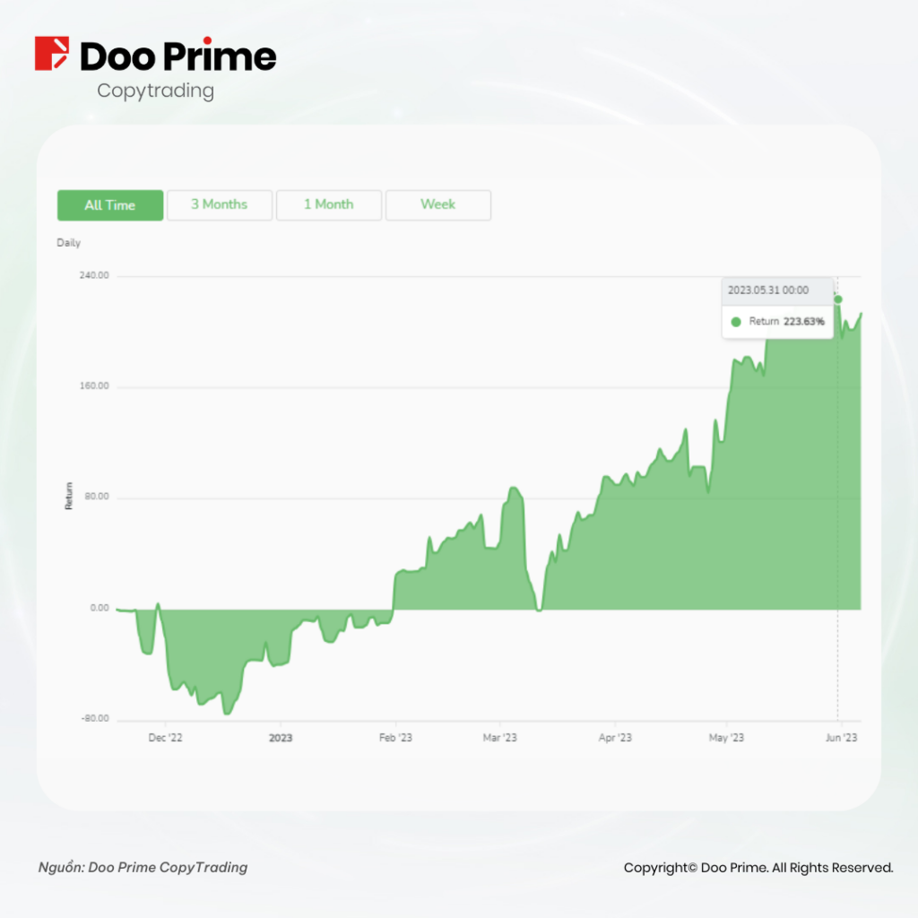 Đáng chú ý, Doo Prime CopyTrading đã ghi nhận một cột mốc chưa từng có trong tháng 5, với mức lợi nhuận trong tháng cán mốc 62,418.42 USD đối với tất cả các nguồn tín hiệu chất lượng cao. Con số trên đã “đạp đổ” những kỷ lục trước đó, đồng thời thiết lập một chuẩn mực mới hướng đến sự thành công kể từ khi Doo Prime CopyTrading chính thức ra mắt.